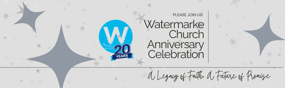 We are so excited to be celebrating the 20th Anniversary for Watermarke Church. We are holding a Celebration Banquet on Saturday, March 21st at 6:00pm and Celebration Church Services on Sunday, March 22nd at 9:00 and 10:30am at 1690 Zion Rd in Bellefonte